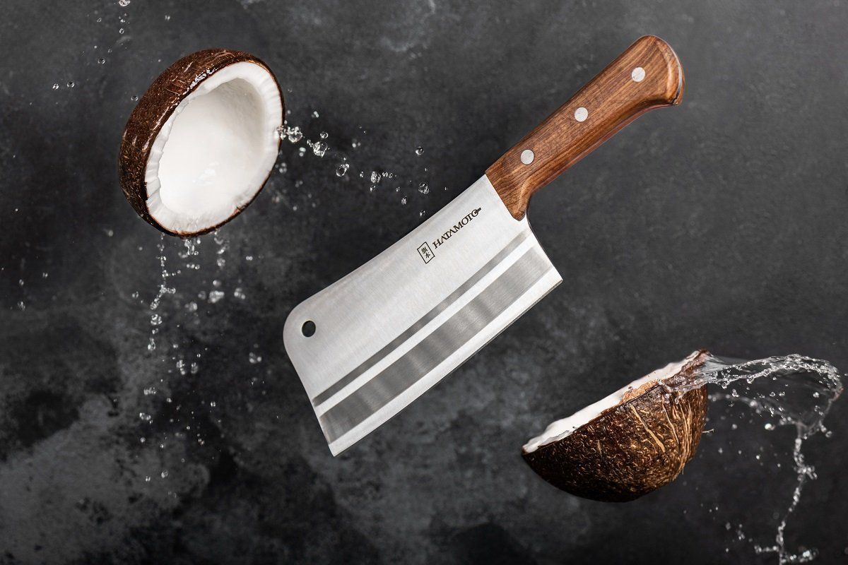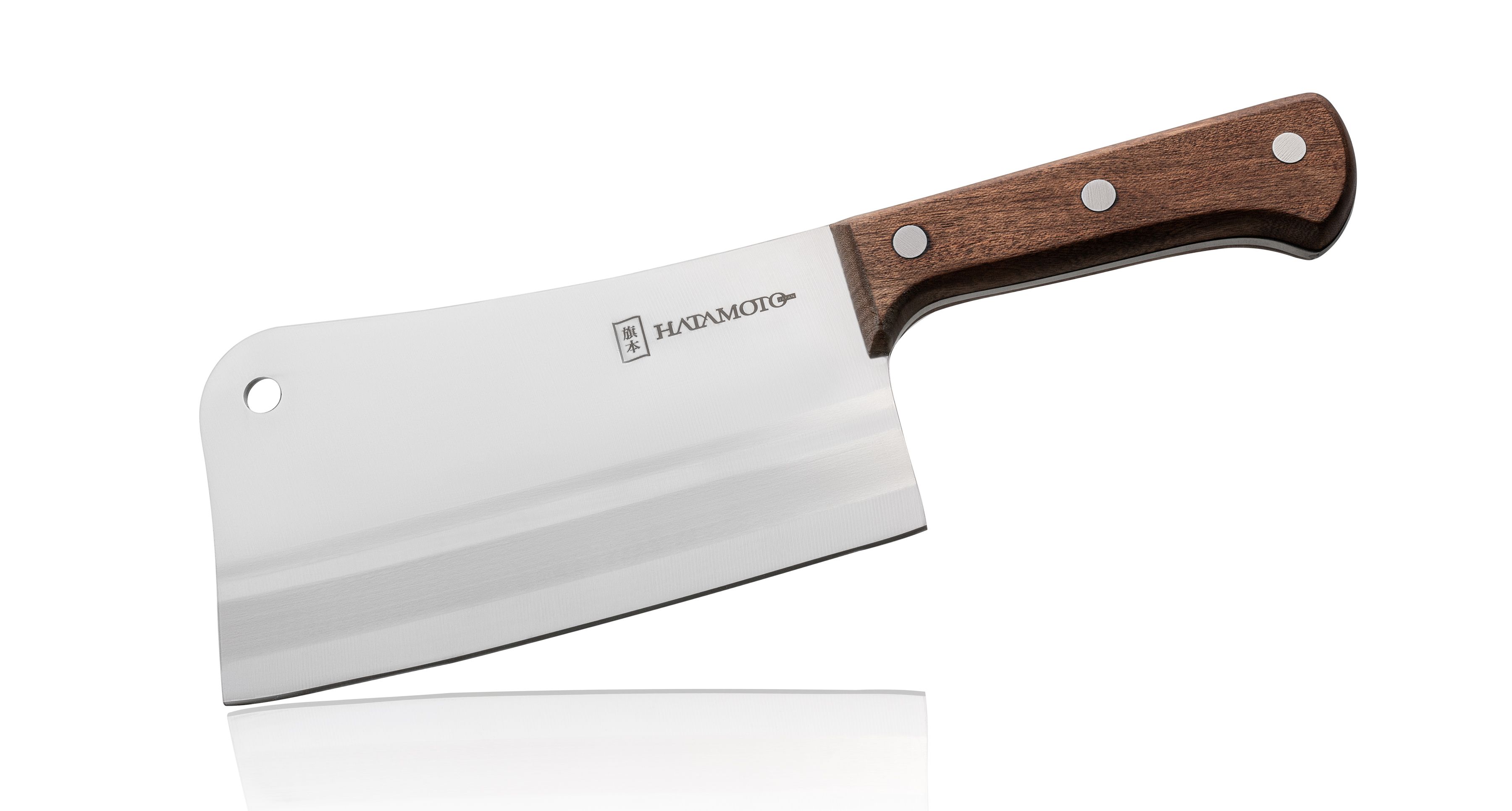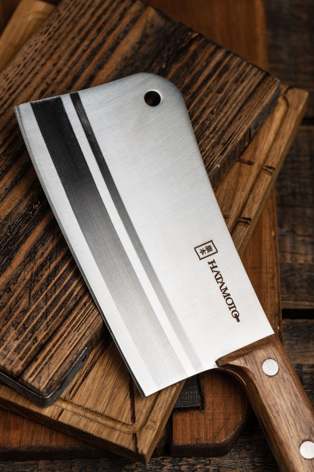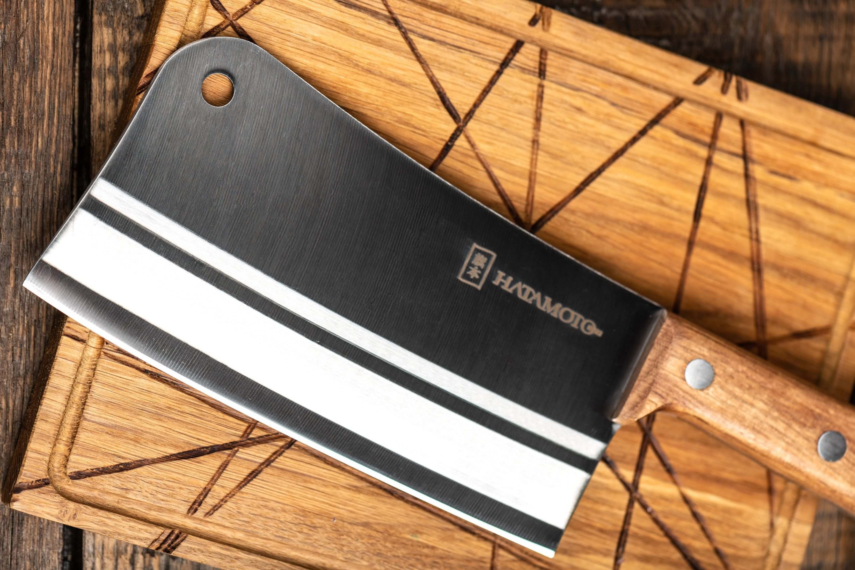 Материал лезвия: SUS420J2 - Твердость лезвия (HRC): 56-57 - Материал рукояти: дерево - Длина лезвия (мм): 185 - Длина общая (мм): 310 - Ширина (мм): 100 - Толщина (мм): 4
