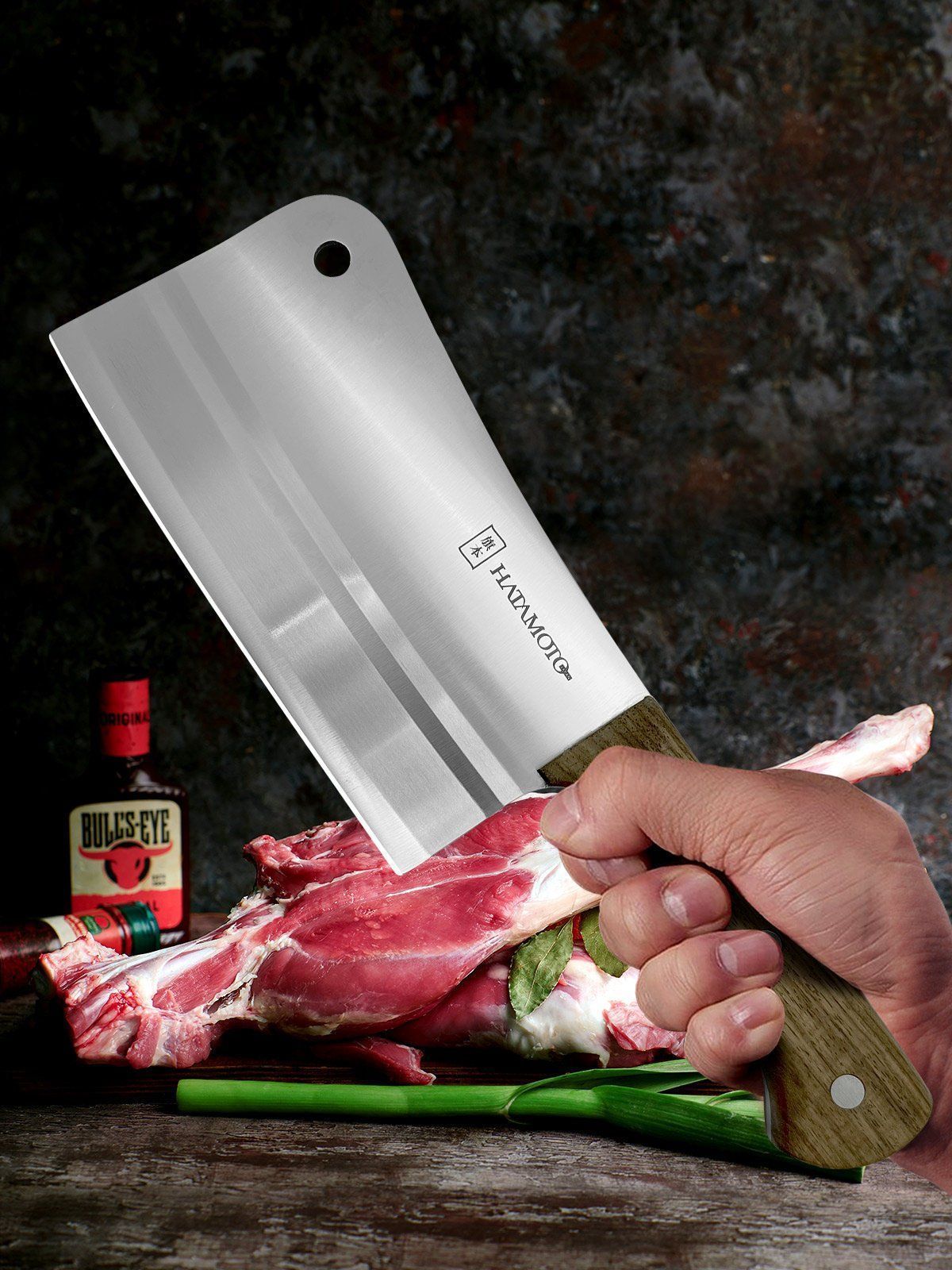 Когда на кухне постоянно готовится мясо, приходится закупать и разделывать большие части туш. Это особенно касается вместительных мест общественного питания европейского типа с обилием мясных блюд в меню. Профессиональные мясники разделывают туши на ленточной электропиле, или вручную специальным топором с широким лезвием и короткой рукояткой.