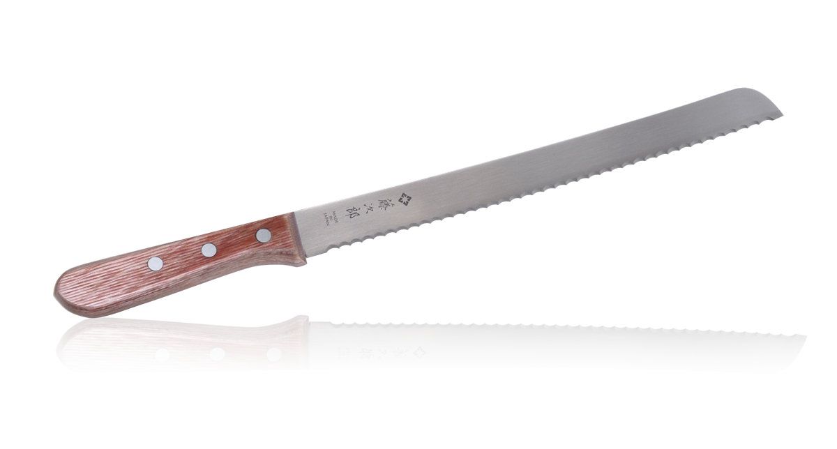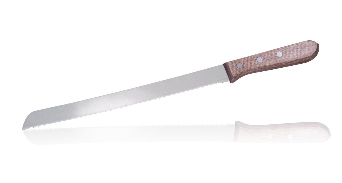 Хлебный нож имеет длинное зазубренное лезвие прекрасно нарезает продукты с твердой коркой и мягкой внутренностью, как у хлеба, томатов, При нарезании нож не скользит, не крошит выпечку, не ломает томаты нарезая их красивыми тонкими ломтиками.