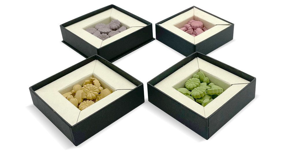 Прессованные благовония Химэнока также называют ароматом царей. Он является частью изысканной линейки благовоний In-koh и разработан для использования с угольными курильницами и пеплом. В каждой упаковке по четыре аромата от 10 до 12 штук.