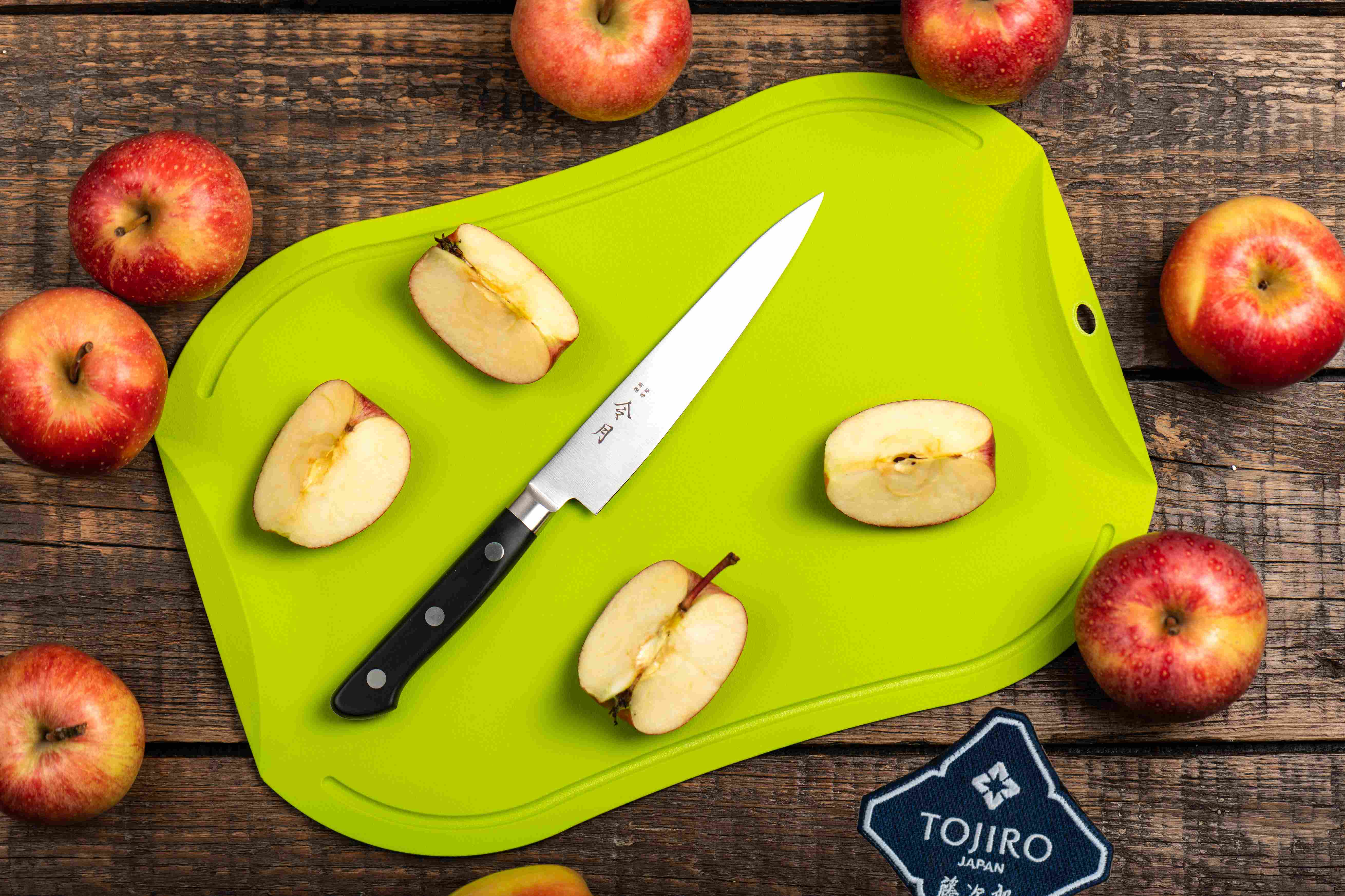 Ещё одно достоинство заключается в гибкости. Они легко гнутся, что позволяет быстро и без усилий счищать нарезанные продукты и продолжать работу. Полости вдоль края предотвращают вытекание жидкостей за край доски, обеспечивая чистоту и сохранность рабочей поверхности.