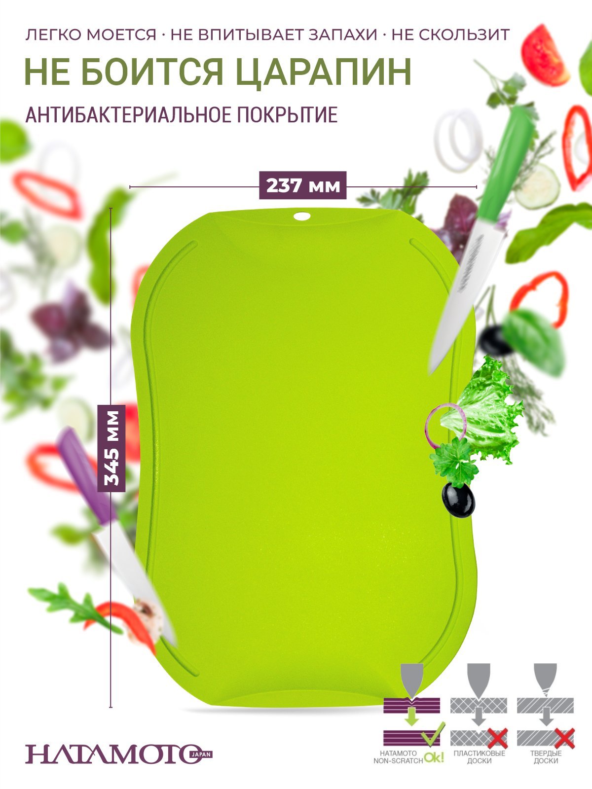 Одно из преимуществ досок Hatamoto – способность не впитывать запахи, даже после нарезки ароматных продуктов. Кроме того, доски не скользят, что обеспечивает безопасность и удобство во время готовки. В отличие от обычных пластиковых досок, которые могут иметь царапины после использования, эта доска остается гладкой и сохраняет свой первоначальный вид.