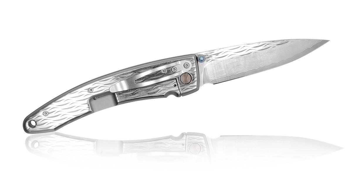 Произведенный в Секи, Япония, Mcusta сочетает в себе современные технологии с традиционным японским мастерством для производства ножей ручной работы, изготовленных на заказ. Этот нож имеет длину 4,375 дюйма в закрытом состоянии и оснащен 33-слойным лезвием из дамасской нержавеющей стали с сердечником VG-10 и рукояткой framelock из нержавеющей стали с зажимом для переноски в правом кармане острием вниз (не реверсивным).