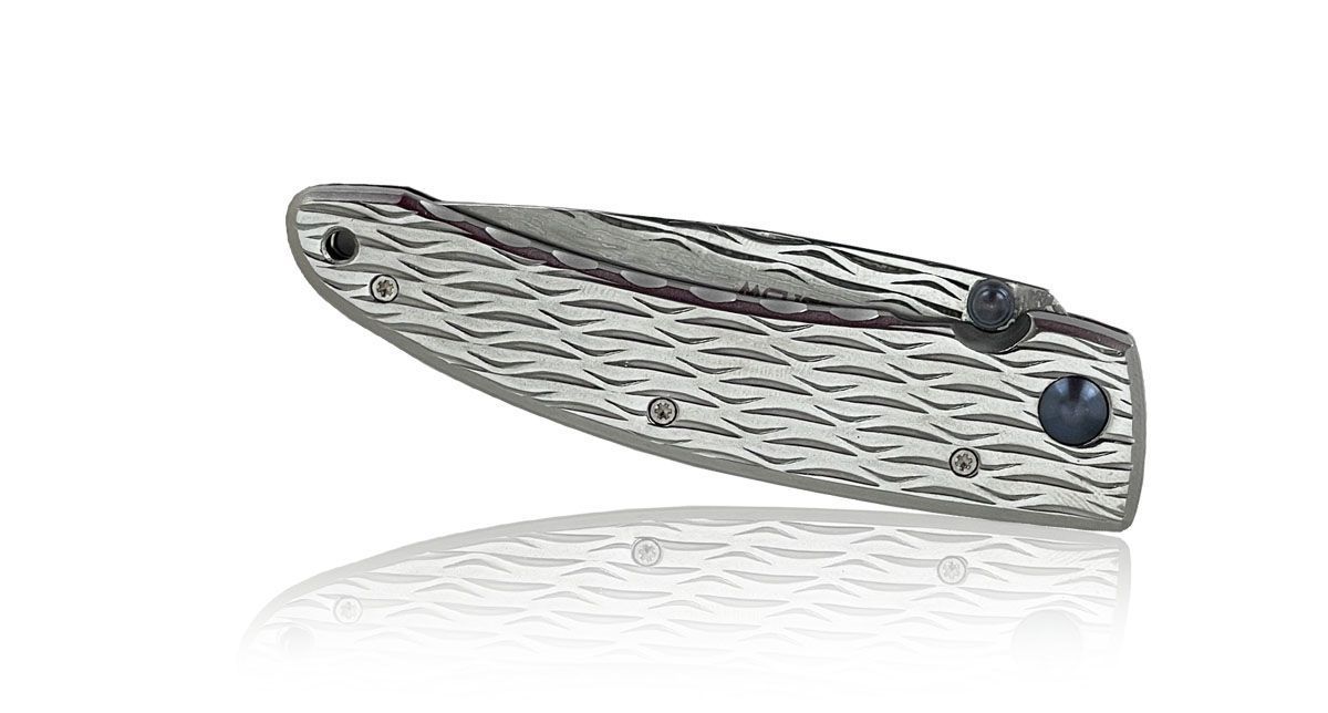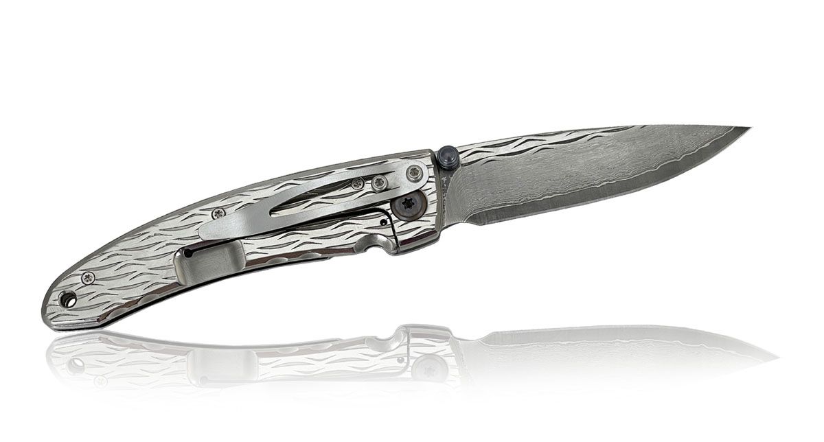 Этот нож имеет длину 3,625 дюйма в закрытом состоянии и оснащен 33-слойным лезвием из дамасской нержавеющей стали с серединой VG-10 и рукояткой framelock из нержавеющей стали с зажимом для переноски в правом кармане острием вниз.