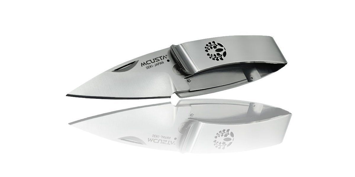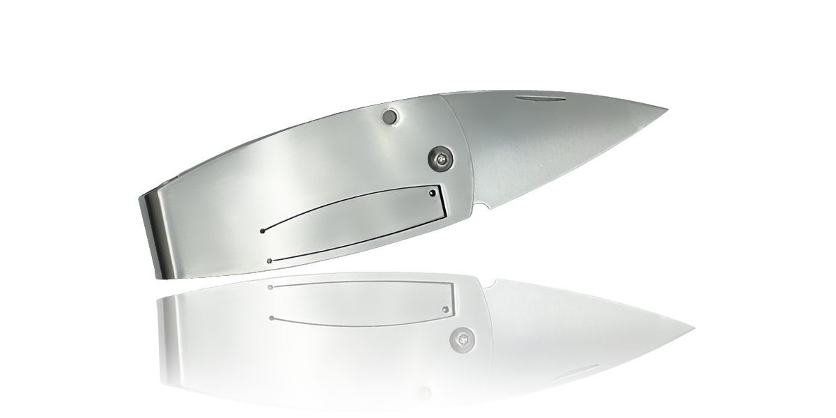 Матированный клинок ножа стреловидной формы с ногтевым зацепом для открытия выполнен из высококачественной нержавеющей стали AUS8, закаленной до HRC 57-60 и надежно крепится к рукояти резьбовой стяжкой. Клинок имеет ассиметричный профиль, популярный на японских ремесленных ножах за легкость и простоту восстановления остроты. Прочная рукоять из цельной пластины нержавеющей стали 420J2 оснащена надежным фиксатором клинка, а её загнутая часть формирует мощную клипсу, которая может использоваться в качестве держателя денежных купюр.