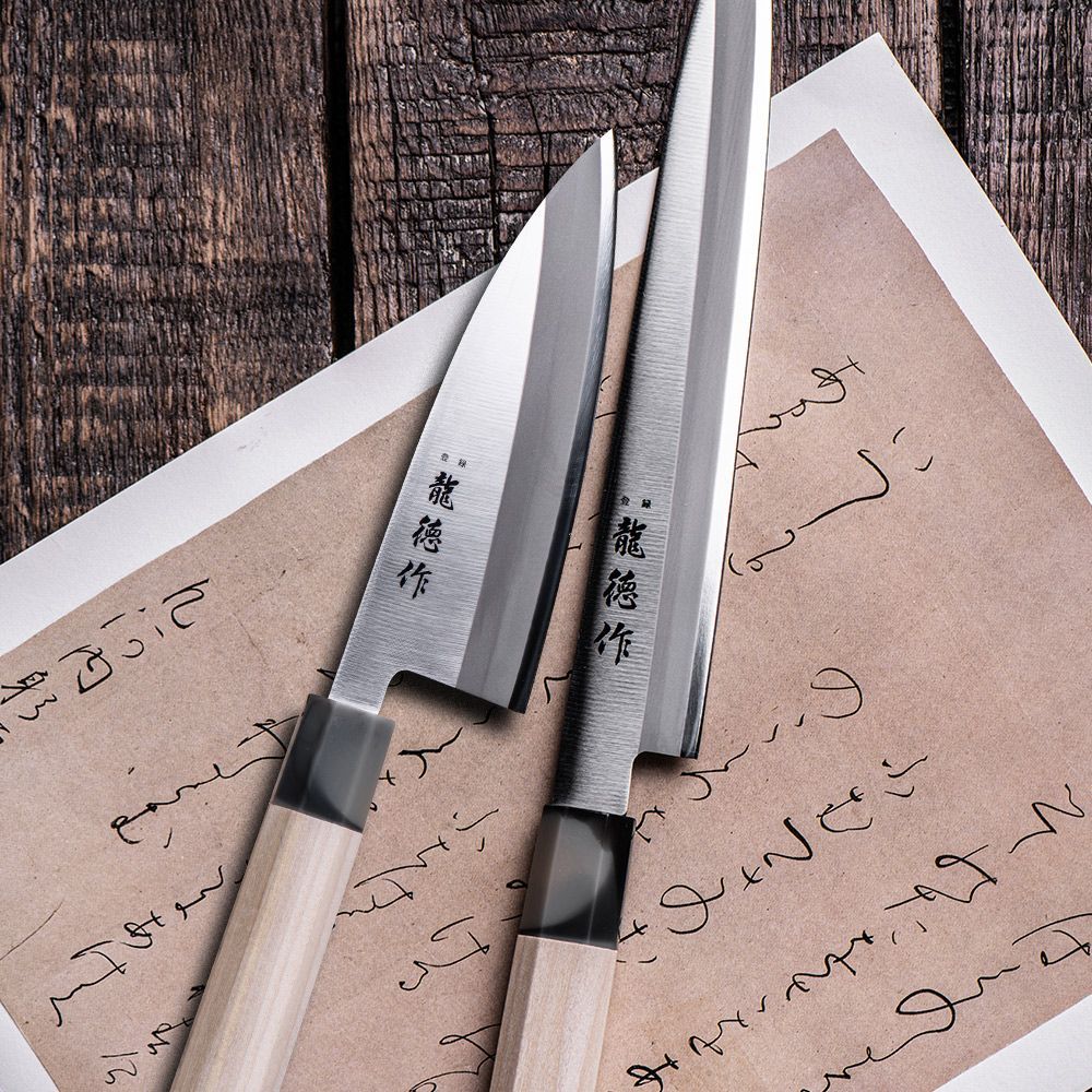 Отделка ножей подчеркнуто ярка и красочна, поскольку работа удобным и красивым инструментом должна приносить только положительные эмоции. Это отражается и на качестве еды. Такой подход последовательно применяется и на профессиональных моделях, и на продукции для любительской кухни. Неизменно лишь одно – и профессиональные, и любительские модели из Японии великолепно режут.