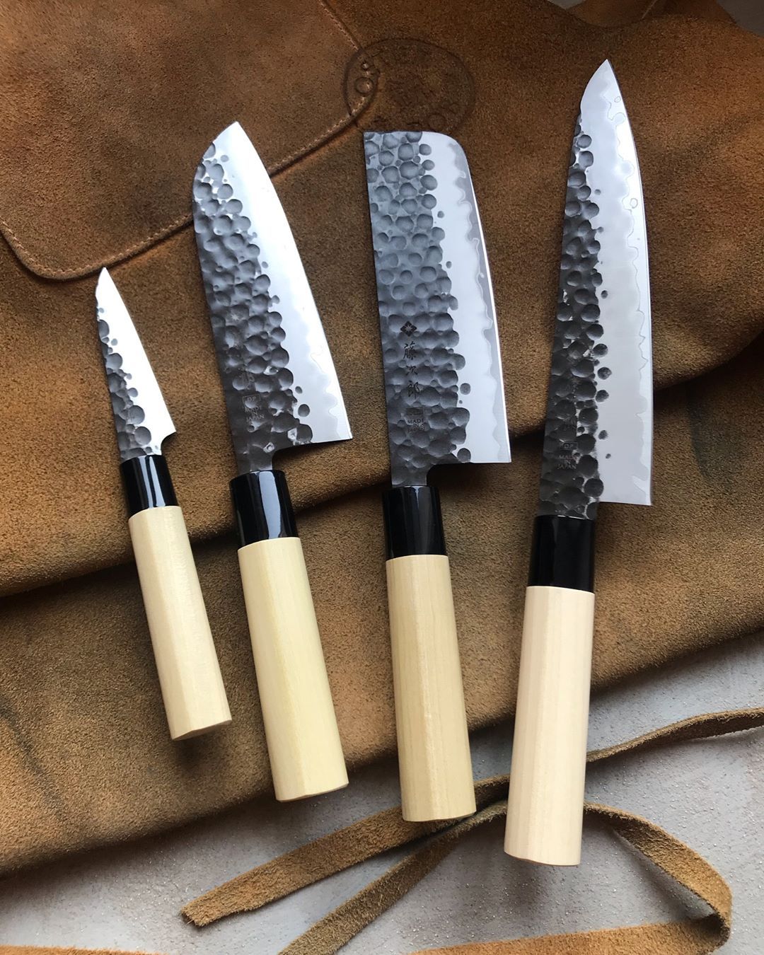 Верные принципам гибкого подхода к требованиям потребителей с разным объемом и интенсивностью решаемых задач, инженеры Tojiro сформировали модельный ряд Hammered под широчайший перечень поварских применений. Классическая «поварская тройка» представлена тремя моделями Гюто с клинками длиной 180, 210 и 240 мм. Поклоннику универсализма идеально подойдет Сантоку. Для работы с овощами подойдут две модели – Накири для нарезки и шинковки, а также небольшой коренчатый Петти для работы с корнеплодами и небольшими овощами.