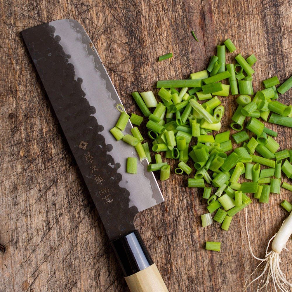 Использование комбинированной техники Kurouchi Tsuchime на моделях Hammered блистательно решает вопрос снижения налипания на клинок нарезки вне зависимости от того, режет ли нож полутвердый сыр или нарезает тончайшими дольками овощи для салатов. Выемки на плоскости клинка создают при разрезании своеобразные воздушные «карманы», снижающие площадь контакта клинка с нарезкой. А специальное темное антифрикционное покрытие клинка, минимизирует налипание продуктов даже в местах контакта, что является полезным свойством для кухонного ножа.