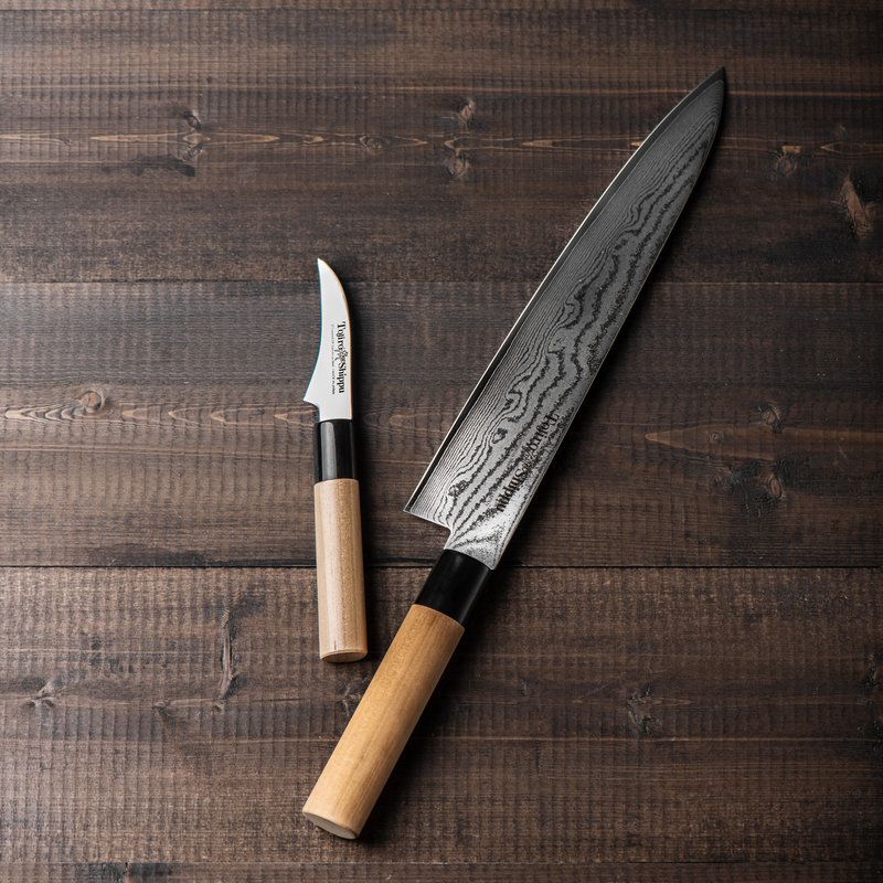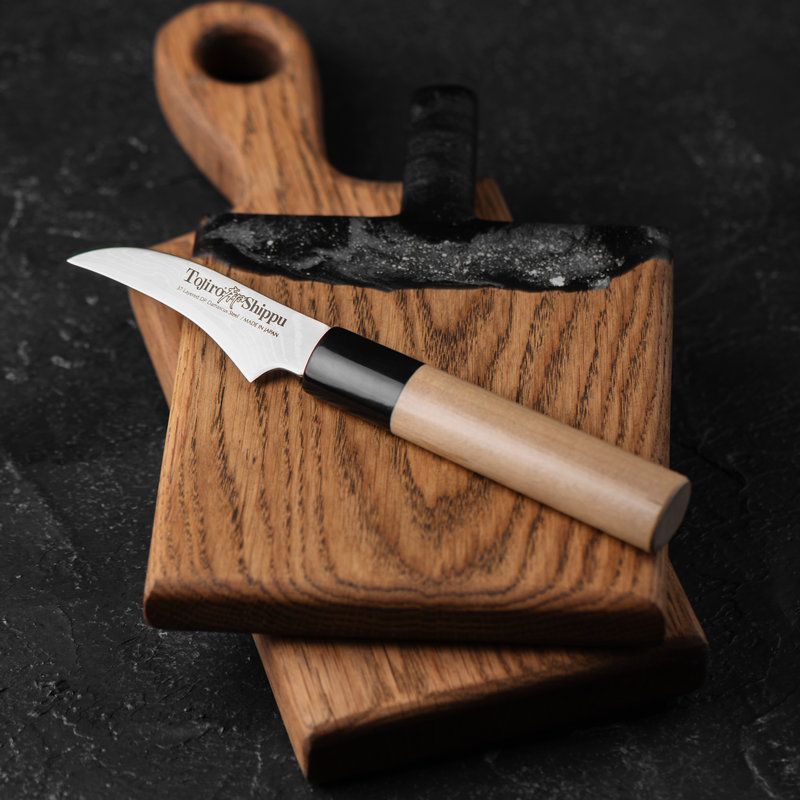 Данная серия ножей изготавливается из многослойной нержавеющей стали VG-10, заводская заточка #8000, а твёрдость по шкале Роквелла составляет 60 единиц. Ножи этой серии выполнены по уникальной, так называемой "дамасской" технологии кузнечной сварки сплетенных в жгут стальных полос с различным содержанием углерода. Основа лезвия - супертвердый сплав из молибденовой стали с добавлением кобальта, ванадия и хрома - состоит из 63-х слоев стали! Благодаря этой технологии японские ножи Tojiro Shippu становятся тонкими, легкими и одновременно невероятно прочными.